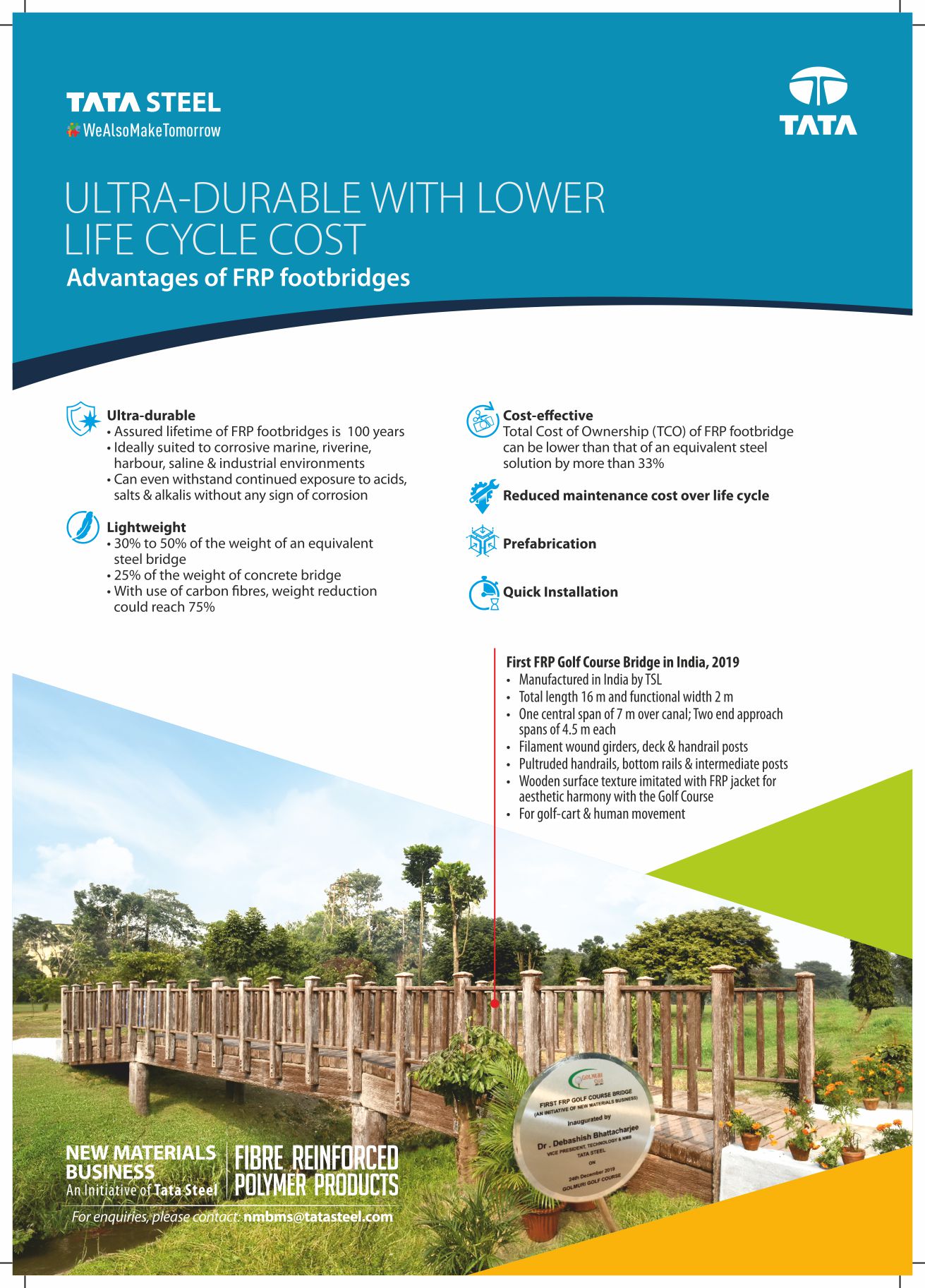 - FRP foot overbridges are corrosion-resistant, maintenance-free and require no periodic painting