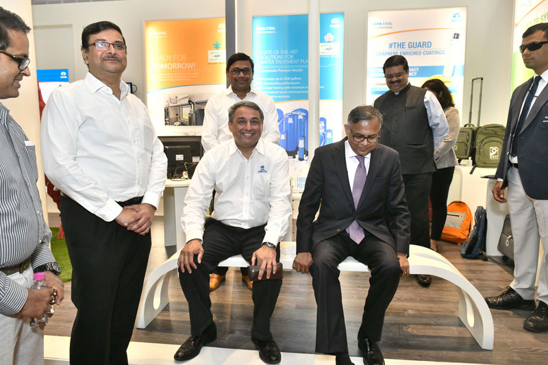 New Materials Business (NMB) took part in the Founder’s Day Exhibition, held at the Steelenium Hall in Tata Steel’s plant in Jamshedpur on 2-3 March 2020. Various units of Tata Steel showcased their products at this exhibition. NMB’s stand with a very unique FRP art installation became the center of attention and attracted a large number of visitors to the stand. The NMB stand displayed the products through mix of backlit panels, presentations on digital displays and a few product exhibits as well. Through the displays, NMB exhibited their ranger of FRP products for Smart Cities, FRP pressure vessels, and FRP components and furnishing for the railways. The stand also included a few products in physical form, such as a FRP pressure vessel and an acid strainer, which was one of the customized solutions from NMB to Tata steel’s CRM unit. Mr. N Chandrasekaran, Chairman of the Tata Group and Mr. T V Narendran, MD & CEO of Tata Steel, and many members of the Senior Leadership Team and various units of Tata Steel visited the NMB stand.